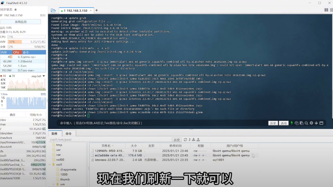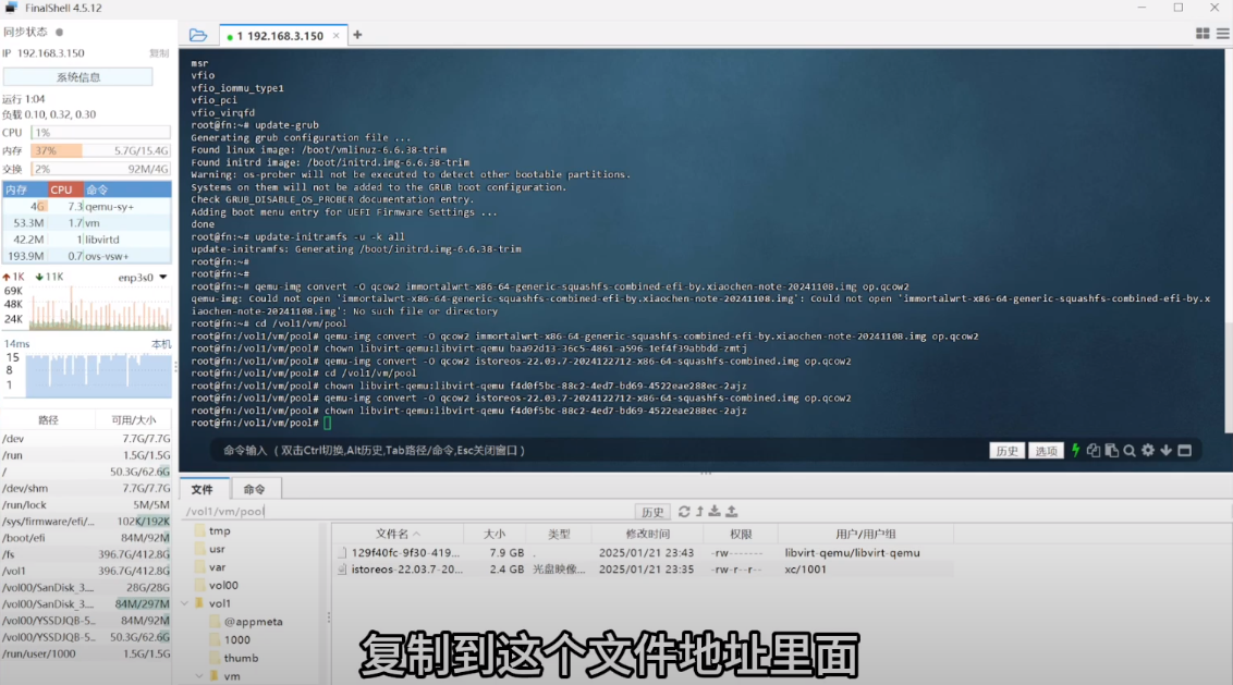 sudo -i输入下面代码:(找到虚拟机对应文件夹)上传istoreos-22.03.7-2024122712-x86-64-squashfs-combined.img文件