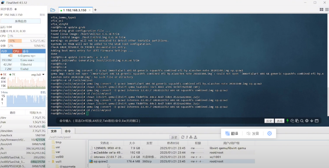 cd /vol1/vm/pool转换.img op.qcow2文件格式
